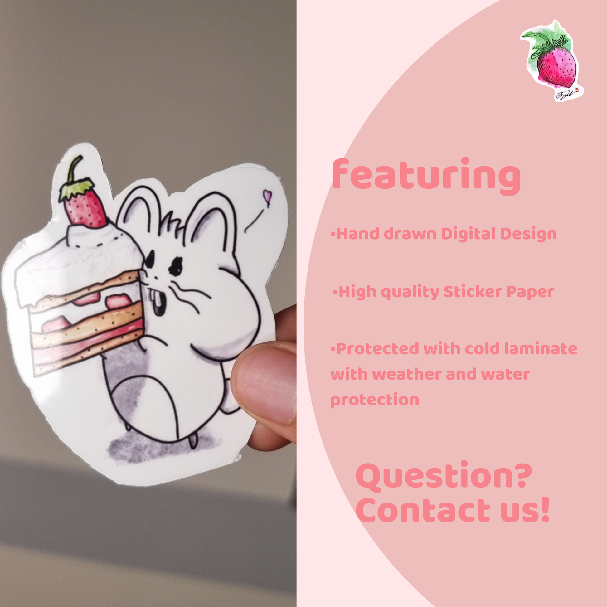 This is my second Sticker design featuring Loosy Lucy, the loose Hamster, with a delicious Strawberry Shortcake!